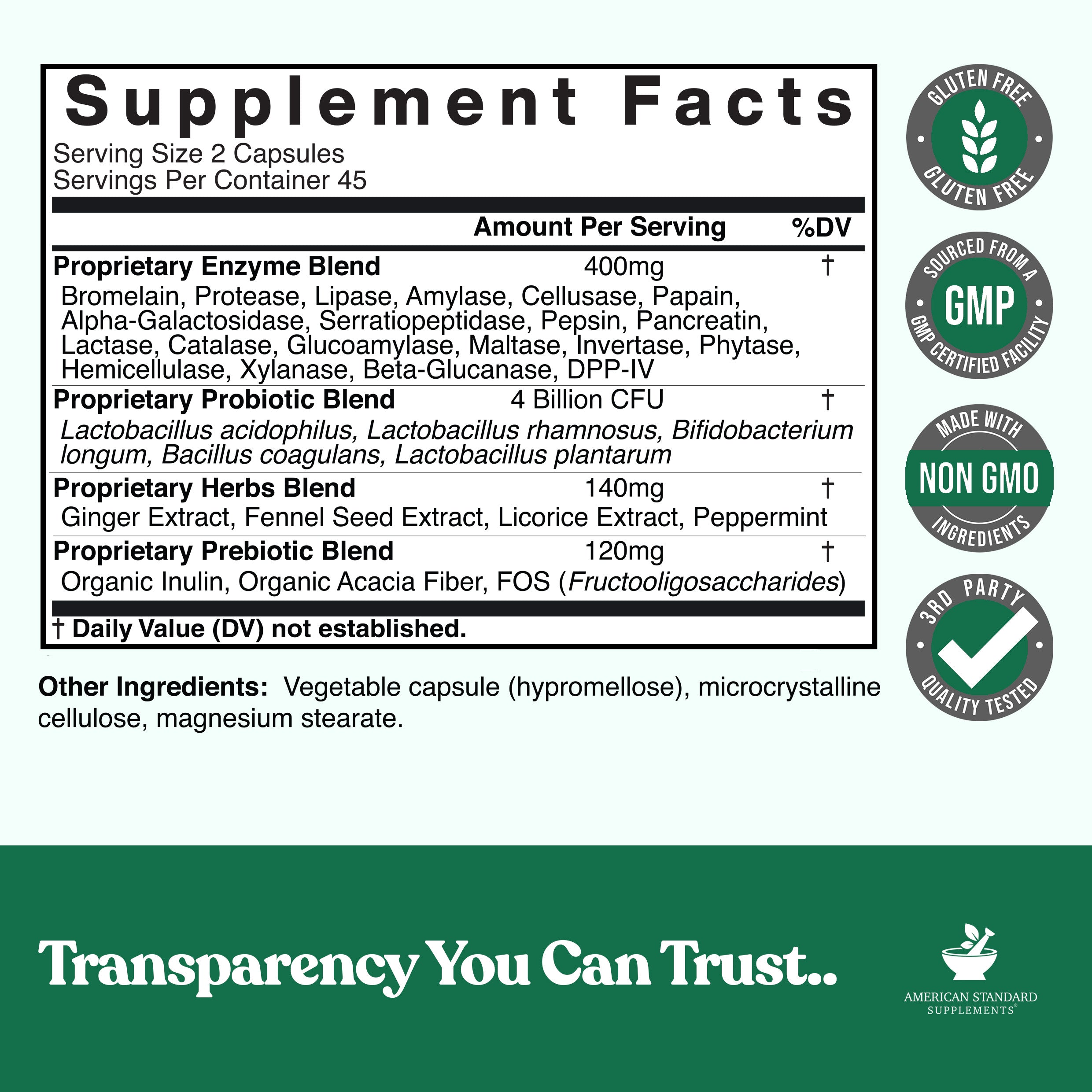 Optimize your digestive health with a powerful combination of Digestive Enzymes + Prebiotics + Probiotics supplement that offers the most advanced support possible.